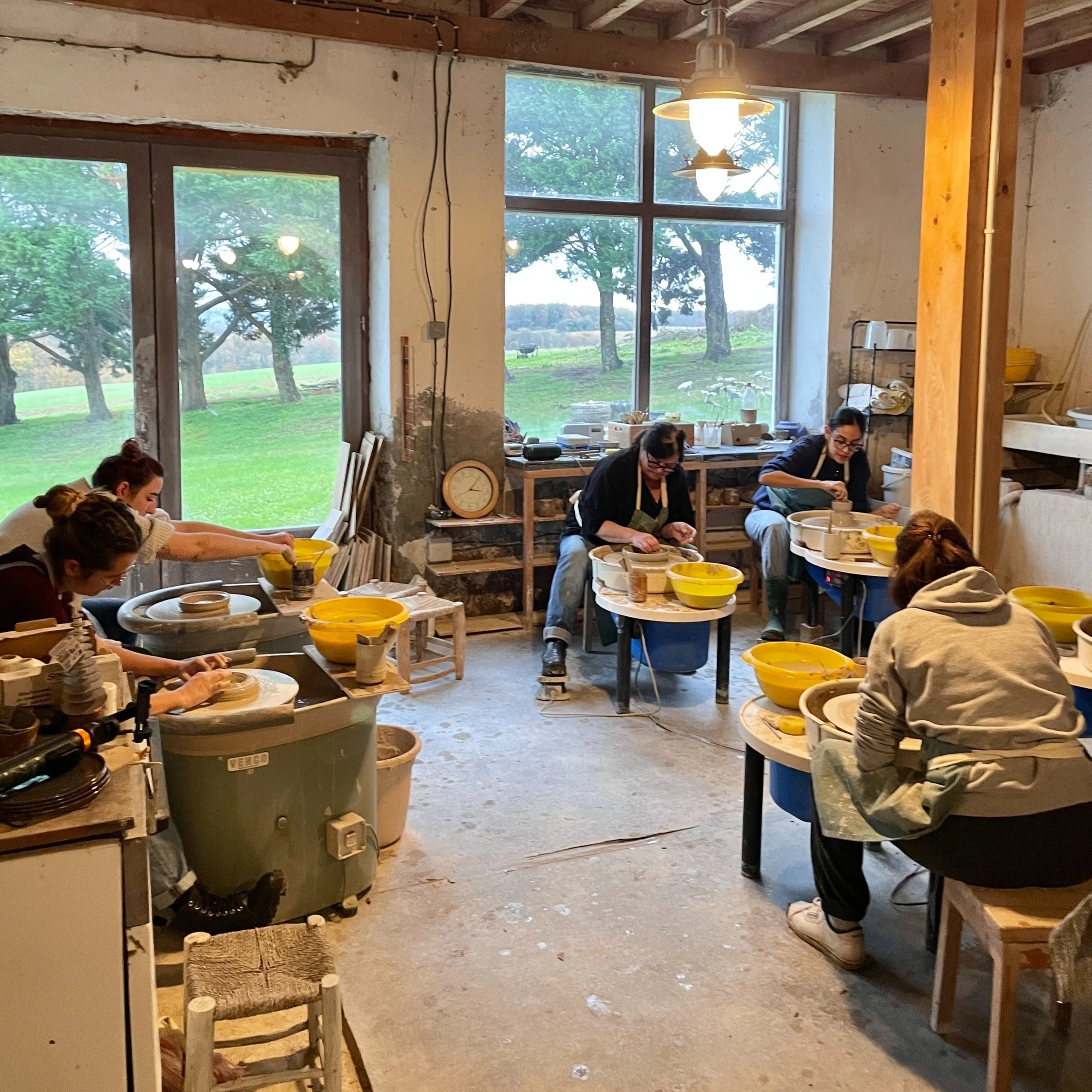 The Pottery: A fully equipped working studio housing 6 electric wheels, 4 kilns, a pug mill and all the basic tools and materials available for use.